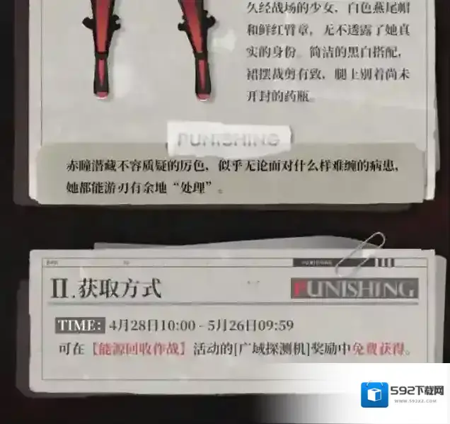 “害怕打针?但是不打针的话病是不会好的……放心,不会痛的啦,你要相信护士姐姐哦。”★获取方式★4月28日10:00 – 5月26日09:59,可在能源回收作战活动的[广域探测机]奖励中免费获得。*本素材仅做展示,非最终效果,具体请以正式服实际情况为准。