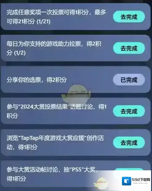 《TapTap》2024年度大赏游戏积分任务玩法介绍