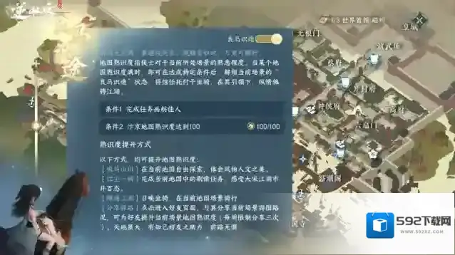 2、如何提升熟识度?完成该地图的主线,华章,奇遇,探索任务都可以获得大量熟识度,如果你是一个风景人文党,骑上你的小马驹在当前地图场景中四处闲逛也可以让熟识度突飞猛进。3、当熟识度满了(达到100)以后,继续在该场景中闲逛就可以触发奇遇“良马识途”。