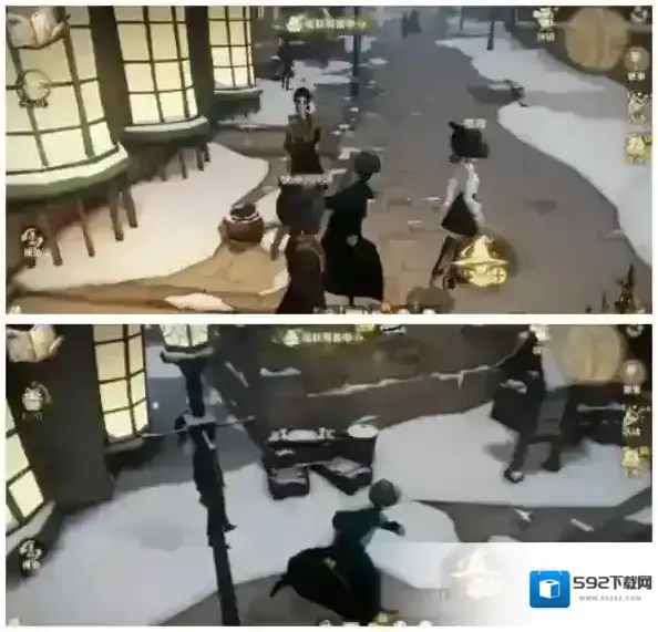 然后往左看,在左边路灯旁边的一个小房子边上有脚印,玩家点击脚印就可以找到隐形兽。