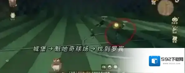 1、从城堡主楼飞往魁地奇球场,在球场找到萝宾;