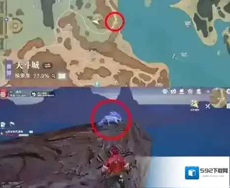 第六个位点,玩家需要前往天斗城的东北方向,抵达海边,在大地图上是有卷轴标明的,小编在图里也进行了标明,玩家抵达悬崖边之后就可以在这里直接拿到风笑天的最后一个记忆,而且这个点位没有boss镇守,轻轻松松就可以拿下。