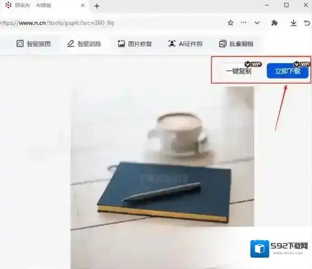 6.等待图片水印去除完毕后,点击右上角一键复制或立即下载即可保存。