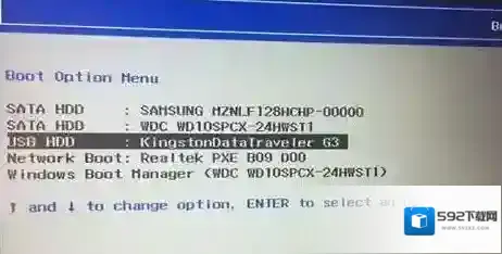 7、插入制作好的U盘启动盘,重启按F12或FN+F12调出启动管理对话框,选择USB HDD识别到U盘启动进入PE