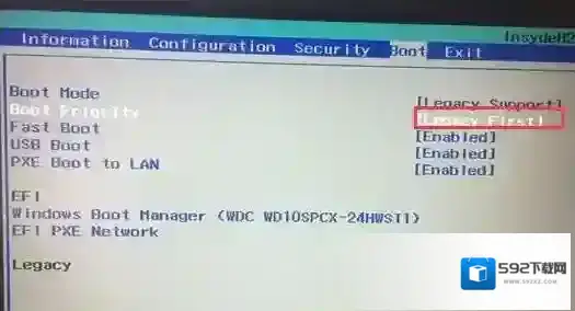 5、再把Boot Priority设置成Legacy First,按F10弹出窗口选择yes回车;
