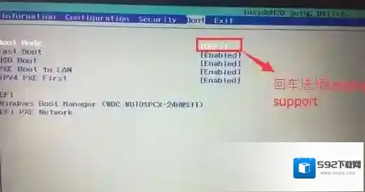 4、切换到Boot,把Boot Mode从UEFI改成Legacy Support;
