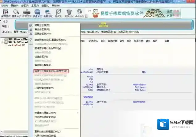2、还是点击硬盘,然后选择分区表为GUID格式;