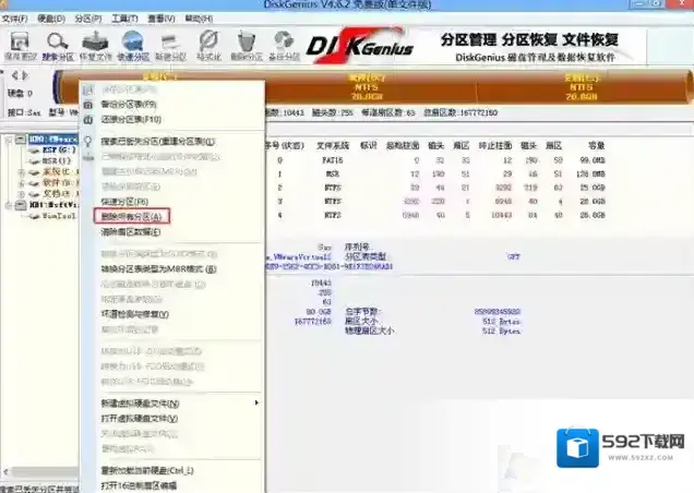 步骤三:硬盘分区为GPT模式1、打开Diskgenius分区工具。点击“硬盘”-“删除所有分区“,然后保存一下;