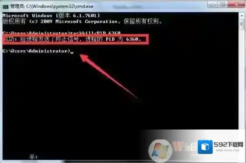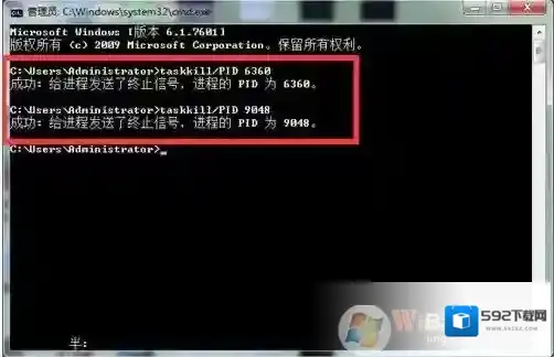 7、如图,系统提示成功,进程已经被关闭。