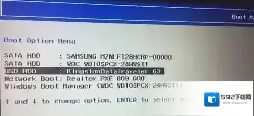 5、插入制作好的U盘启动盘,重启按F12或FN+F12调出启动管理对话框,选择USB HDD识别到U盘启动进入PE,回车;