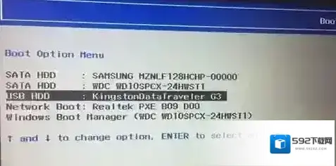 5、插入制作好的U盘启动盘,重启按F12或FN+F12调出启动管理对话框,选择USB HDD识别到U盘启动进入PE,回车,如图: