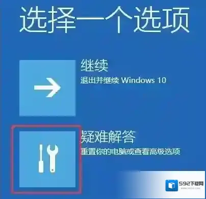 2、电脑重启,在“选择一个选项”画面中选择“疑难解答”