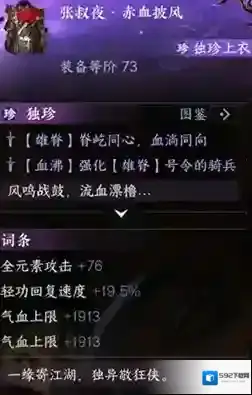 击败张叔夜后,有概率获取专属坐骑赤兔与独珍装备张叔夜·赤血披风。