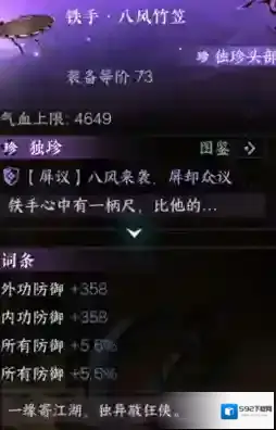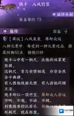 穿戴独珍装备铁手·八风竹笠后,每受到一种元素伤害,便会叠加一层防御力。八种元素侵扰,正如铁手师兄应对流言一般,任他八风来袭,我自不动不倾。