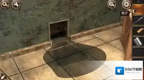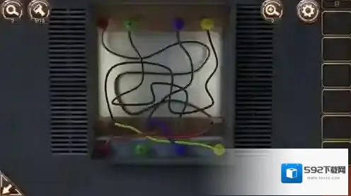 10.调查门右边的控制台,用钳子剪断铁丝打开控制台,将对应颜色的按钮连接起来,对应顺序分别为黄蓝绿红。连好后就会开门。进入门内即可顺利过关。