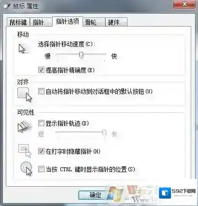 4、这个界面是设置鼠标指针其他选项的,如鼠标是否有重影等。
