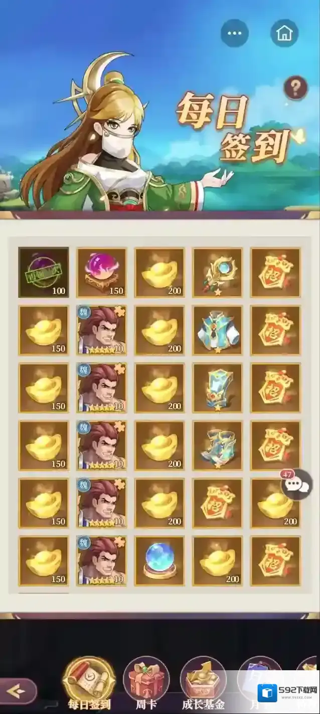 每天签到领福利,橙装、抽卡道具、5星橙将领不停~