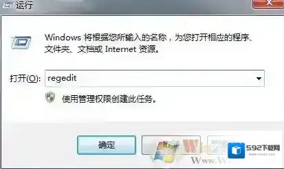 方法三:修改注册表数值1、按win+r打开运行窗口,输入regedit,回车打开注册表编辑器,如图所示: