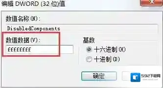 3、双击打开DisabledComponents,将里面的数值数据修改为ffffffff,点击确定即可,如图所示: