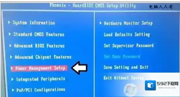 6、比如某些机型在进入BIOS之后,找到POWER MANAGEMENT SETUP中的Power Saving Mode设置为Disabled,再按F10保存设置退出BIOS,重启电脑;