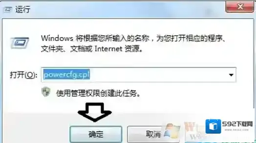 9、如果虽然开机有提示,但是稍后还是能够进入系统的情况,可以在运行中输入:powercfg.cpl →确定;