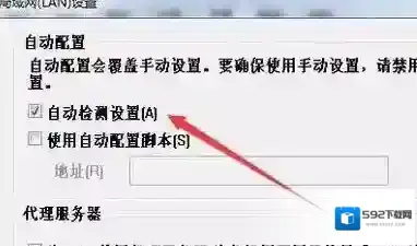 7、在打开的局域网设置窗口中,选中“自动检测设置”复选框,最后m.winwin7.com点击确定按钮,重启浏览器即可解决问题!