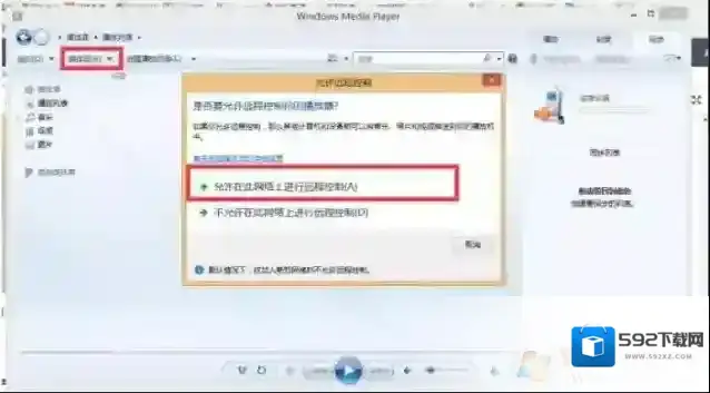 4. 打开windows附件 windows media player, 点击媒体流,勾选”远程控制我的播放器“按钮。