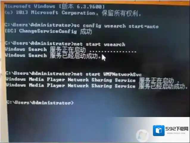 sc config wsearch start= autonet start wsearchnet start WMPNetworkSvc