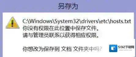 4、完成之后,点击“保存”如果未拉出C:WindowsSystem32driversetc此目录,系统会提示您没有权限执行此操作。