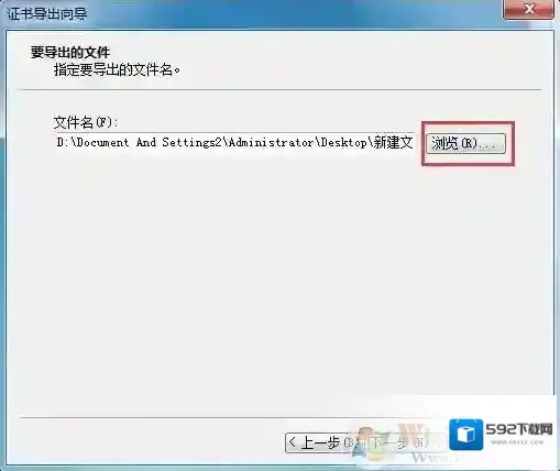 11、点击浏览,选择指定要导出文件名的所在位置,选择完毕点击“下一步”;