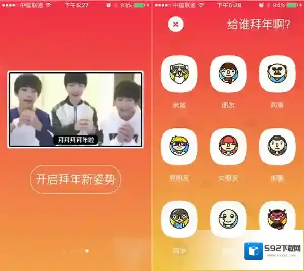 另外春节将至,为了应景,应用最新版增加了一个明星帮你拜年的功能。点击后会提供“亲戚”、“盆友”、“同事”等 9 种不同的对象,你只要输入对方的称呼,别的啥都不用干,就能针对不同对象生成一段鬼畜拜年视频了。
