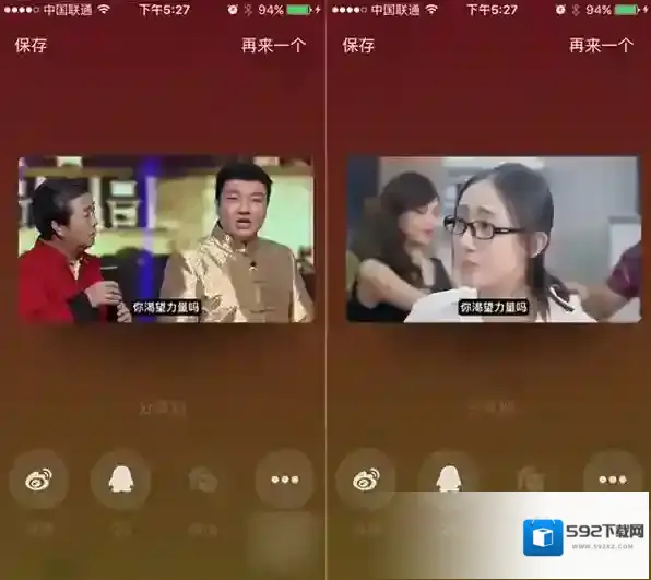 鬼畜完成之后你就会看到被剪辑在一起的各种镜头,然后明星们一人一句或者一人一个字地蹦出你刚才输入的文字。效果并不是始终能保持很好,得取决于它有什么样的素材,以及你打的那句话,比如你打“红红火火恍恍惚惚”生成的视频就很有笑点,另外软件感觉还挺智能,输入 233 自动匹配金馆长,输入“Are you ok?”自动匹配雷布斯……
