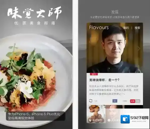 《味觉大师》经过更新之后已经完美支持 iOS9 并且在界面和功能上也做了适当调整。首先我们可以明显感受到《味觉大师》的界面更加大方了,在主页顶部显示了近期举办的活动以及精品内容推荐,下方则分别罗列了资讯、秀场、精选餐厅、人物志等内容,从布局来看是很符合国人使用习惯的。