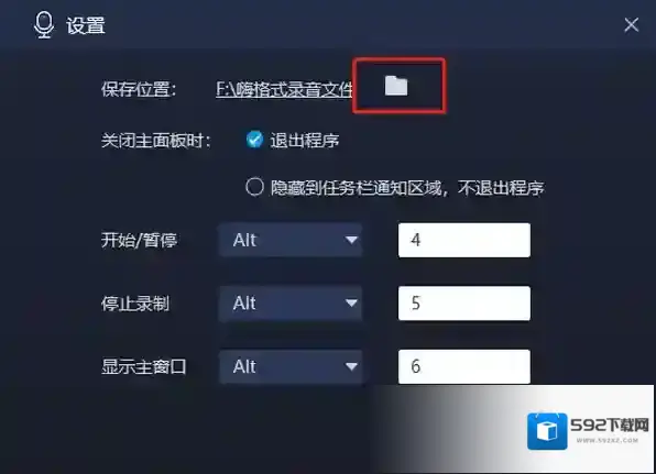 4、点击界面左下角的齿轮图标,也就是“设置”,选择录音文件的保存位置,根据需求自行调整即可。
