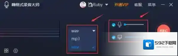 1、用户可以通过选择录音的不同格式来满足录音需求,目前有WAV和MP3两种模式。还可以设置电脑系统和麦克风两种声音的音量高低。