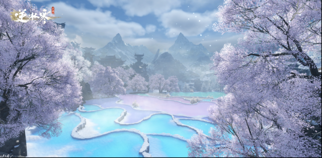 游戏开发过程中画面,非最终效果图白帝城终年落雪,而这,是机关世界里的缤纷色彩。听说在这里泡温泉,身体会染上温泉的颜色。