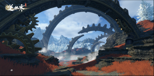 而来到了逆水寒这个超自由的武侠江湖,以机械为主的科技研发也将作为一种“新式江湖派别”,将在六月底的2.0新赛年与大家见面。武侠,将正式走进机械时代。今天,小寒就带大家一起领略新赛年版本第一张开放世界新地图,也就是在新赛年开启后,大家能玩到的第一个新东西:全新开放世界场景玄机。此处是新赛年版本中,新流派玄机所在的流派领地,隶属于白帝城,与神相领地相邻;同时,也是逆水寒有史以来最伟大的土木工程,以及科技含量最高的地方。寒冷、温暖、庄严、惬意初入玄机,洁白柔软的雪花纷纷扬扬,与冷硬神秘的城墙相呼应,无需言语,便能感受到城中机关之术所散发出的宏伟壮观,令人心生敬畏。精巧复杂的建筑结构之下,嵌合着有序排布的齿轮,一座恢弘的机关之城便由此运转不息。