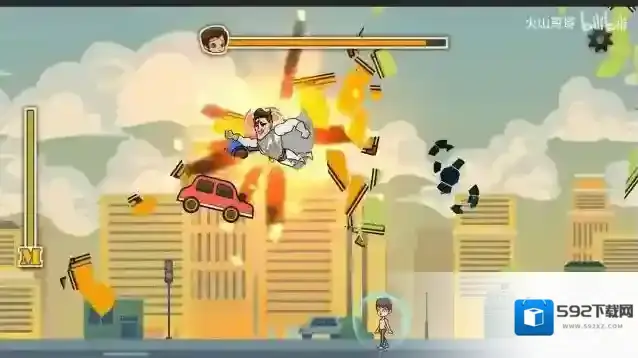 4、坚持一段时间后就会进入boss战,滑动屏幕可以移动角色躲避高楼,击中boss可以减少血量,当血量为零时就可以通关。