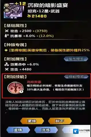 2、装备技能在装备强化至+12后会在以下装备技能中随机获得1个