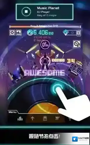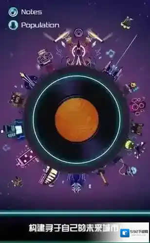 3、场景互动体验:3D场景随音乐节奏动态变化,音符击打触发绚丽特效,建筑升级解锁全新星球区域,实现视听与经营的深度交互体验。