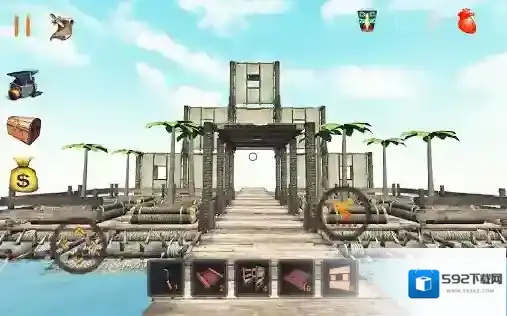 3、制作各种生存的装备、武器和工具,并建造扩展自己的木筏,让它从简易的木筏变为坚固的海上堡垒。