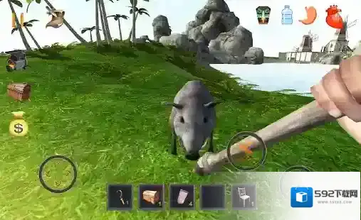 2、我们可以登录各种岛屿,拿起武器、道具来探索岛屿,捕捉各种猎物来充当食物,保证长久的生存。