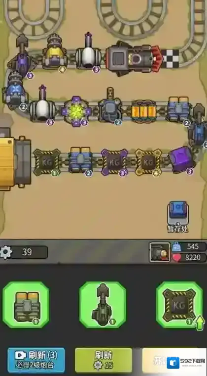 2、进入关卡后玩家需要将炮塔放在火车车厢上,相同的炮塔可以合并来提升等级。