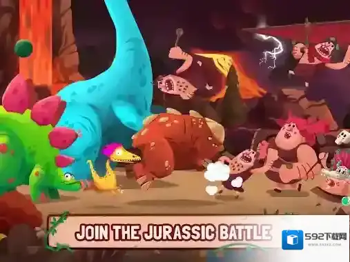 1、指挥一支由霸王龙、三角龙和其他野蛮恐龙组成的军队,在史诗般的古代战争奇观中保护你珍贵的蛋免受饥饿的野蛮人的伤害。