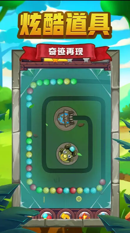 2.发射彩色弹珠形成同色组合来消除轨道上的珠串