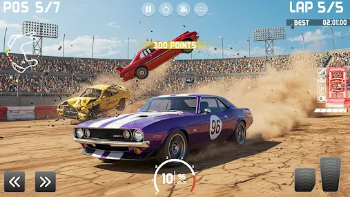 2、在德比模式中,大家可以无拘无束的驾驶,没有任何规则限制你,将一切对手赛车撞毁就行。