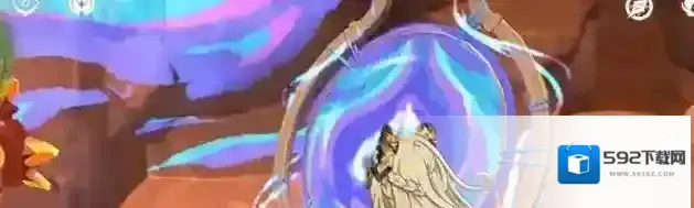 第三步:进入后借助面前的水珠,穿过屏障顺着洞窟来到尽头,与仙人浮锦对话开启供奉系统。