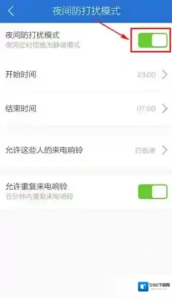 5、点击夜间防打扰模式后的按钮