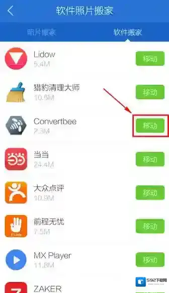 5、找到需要搬家的APP,点击移动