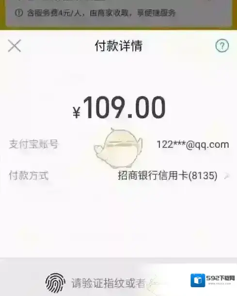 6、弹出付款详情页面,验证指纹或支付密码,完成支付;